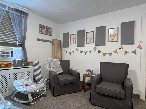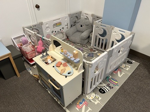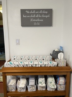 Our newly renovated nursery offers the comforts that babies and caregivers may need during our Sunday services. The nursery is equipped with a rocking chair, comfortable gliders, toddler play area, changing table (stocked with necessities), and even snacks for caregivers.